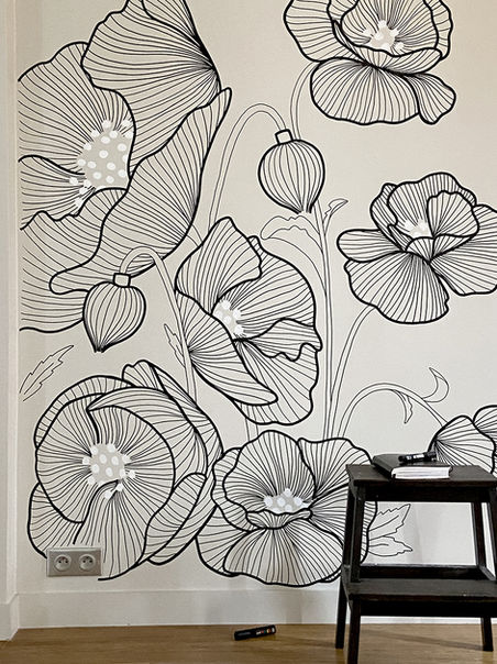 Accompagnée de mes pinceaux et mon feutre, je dessine sur vos murs !